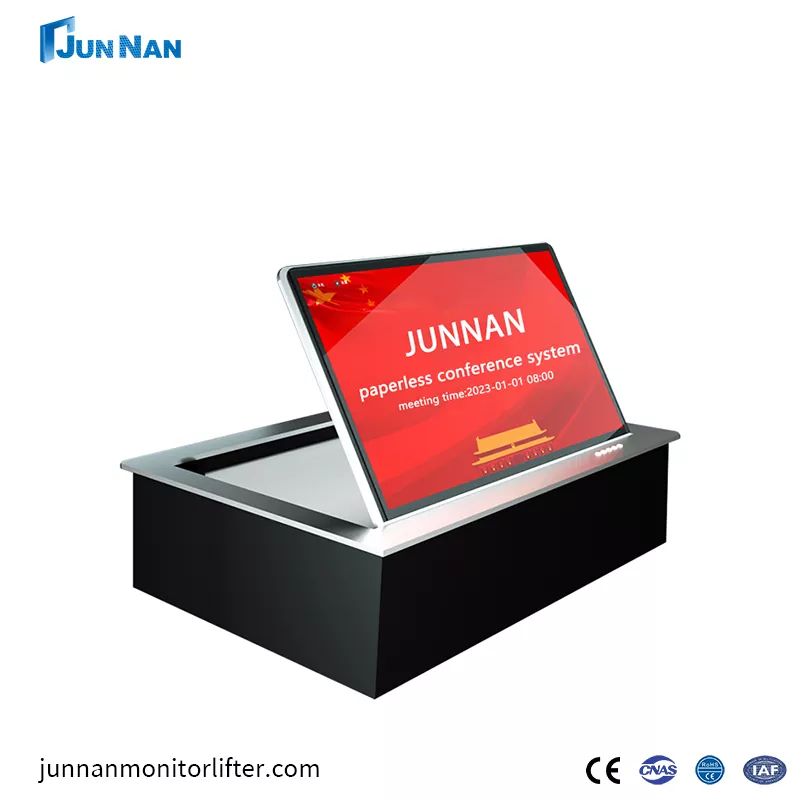 Guangzhou junnan چین میں ڈیسک ٹاپ فلپ مانیٹر بنانے والا ایک پیشہ ور ادارہ ہے۔ ڈیسک ٹاپ فلپ ڈسپلے 15.6 انچ اسکرول اوپر اسکرین کانفرنس سسٹم بنیادی طور پر اعلیٰ سطحی ایگزیکٹو کانفرنس ٹیبلز میں استعمال ہوتا ہے۔ کانفرنس ڈیسک ٹاپ فلپ مانیٹر استعمال میں نہ ہونے پر کانفرنس ٹیبل کے اندر چھپائے جا سکتے ہیں، جو ڈیسک ٹاپ کی جگہ بچاتا ہے اور کانفرنس ٹیبل کو مزید صاف ستھرا بناتا ہے۔ استعمال میں نہ ہونے پر مانیٹر کو چھپانا اسکرین پر موجود مواد کو دوسروں کے دیکھنے سے بچاتا ہے، جس سے معلومات کی حفاظت میں اضافہ ہوتا ہے۔ موٹرائزڈ کنٹرول کے ساتھ، فلپر دیکھنے کے بہترین زاویہ اثر کے لیے مانیٹر کو آسانی سے دائیں زاویے پر پلٹ سکتا ہے۔ یہ مائیکروفون، ایک کلیدی پلٹائیں، سامنے اور پیچھے ایڈجسٹمنٹ، اینٹی چٹکی کے فنکشن کے ساتھ، محفوظ اور فکر سے پاک، چھپی ہوئی ایمبیڈڈ تنصیب بہت خوبصورت ہے۔